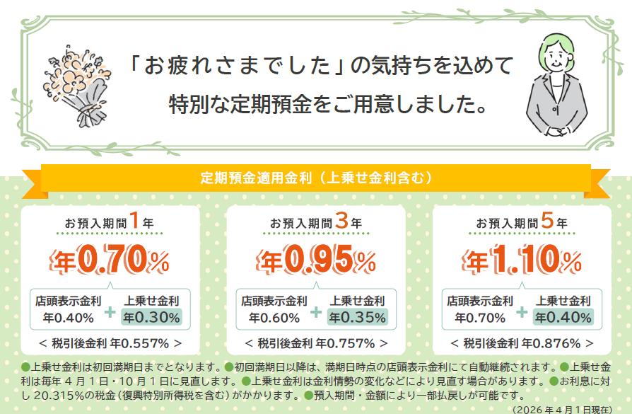 ※上乗せ金利の内容は、2026年4月1日現在。毎年4月1日・10月1日に上乗せ金利を見直します。